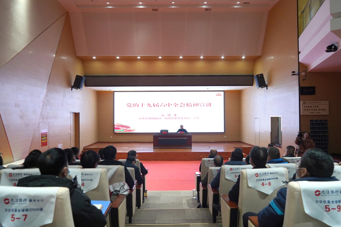 為深入學(xué)習(xí)宣傳貫徹黨的十九屆六中全會(huì)精神,根據(jù)市委統(tǒng)一部署安排,12月29日晚,市委宣講團(tuán)成員、市國資委黨委書記、主任吳詩東到贛州城投集團(tuán)作宣講報(bào)告,集團(tuán)黨委書記、董事長劉曉方主持報(bào)告會(huì)并講話,集團(tuán)全體高管參加活動(dòng)。