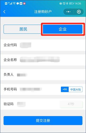 4. 選擇 “企業(yè)”注冊(cè),并填寫相關(guān)信息。(企業(yè)代碼由贛州匯金砂業(yè)有限公司提供)
